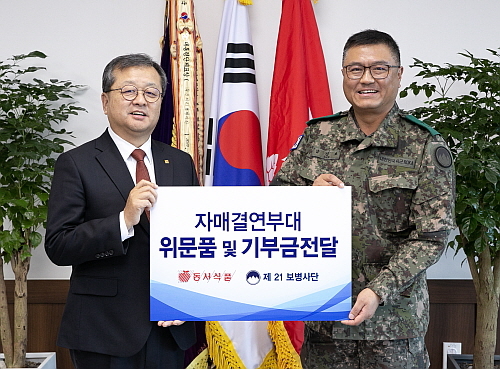 [산업경제뉴스 민혜정 기자] 동서식품(대표 김광수)이 지난 1일 자매부대인 강원도 양구군 육군 제21보병사단(사단장 남진오 소장)을 방문해 총 4,500만원 상당의 기부금과 위문품을 전달했다고 밝혔다.