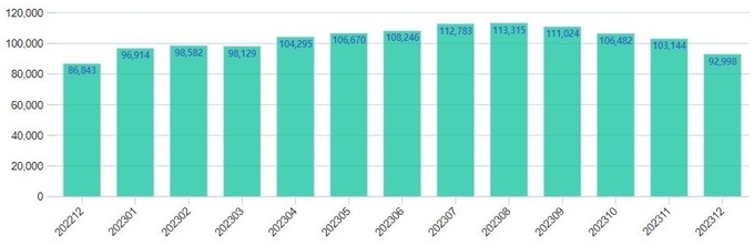 서울부동산정보광장에 따르면 2023년 12월 서울 아파트 거래량은 868건으로, 2022년 12월 833건과 비슷한 수치를 보였다.
