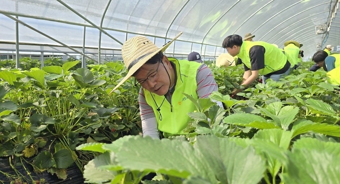 농협금융은 이 날 강신노 리스크관리부문 부사장과 NH농협금융 모든 계열사 리스크관리부문 임직원 30여명이 참석한 가운데 남양주시 조안면 농가 세 곳에서 딸기농장 비닐하우스 내 제초작업 및 줄기 솎기 등의 작업을 지원했다고 밝혔다.