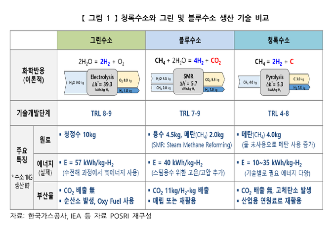 ![해외 주요국은 청록수소를 중요한 저탄소수소로 분류하여 전략적 지원을 강화하는 추세다. 자료는 청록수소와 그린 및 블루수소 생산 기술 비교. [자료=포스코경영연구원]](http://www.entropytimes.co.kr/data/photos/20250835/art_17564478557025_308564.png)