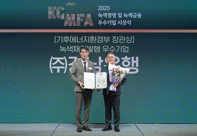 [산업경제뉴스 민경종 기자] BNK경남은행이 27일 기후에너지환경부와 한국환경산업기술원이 주관한 ‘2025년 녹색경영 및 녹색금융 우수기업 시상식’에서 ‘기후에너지환경부 장관상’을 받았다고 이날 밝혔다.