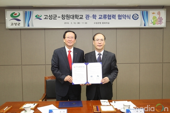 고성군은 지난 16일 오전 11시30분, 고성군청 중회의실에서 최평호 고성군수, 최해범 창원대학교 총장 등 양 기관 관계자 10여 명이 참석한 가운데 ‘고성군-창원대학교 관·학 교류협력 협약식’을 개최했다고 밝혔다.