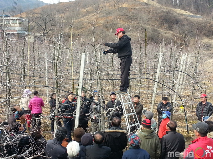 (미디어온) 예천군농업기술센터는 지난 18일 오후 1시30분부터 은풍면 은산리 이원희, 이시진 농가 포장에서 관내 사과재배농가 50여명을 대상으로 사과 정지전정 현장 교육을 가졌다고 전했다.