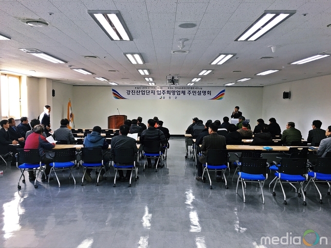 (미디어온) 전남 강진군은 신성장동력이 될 강진산업단지에 첫 입주를 희망하는 기업이 지역주민들에게 사업계획을 설명하는 자리를 가져 산단 분양에 청신호가 켜졌다고 전했다.