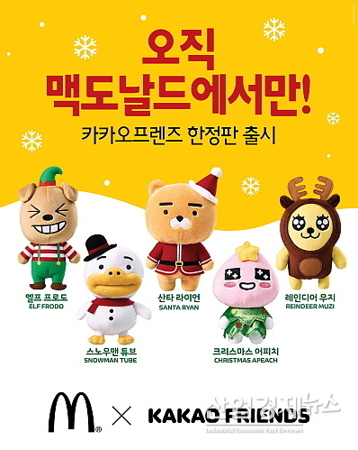 맥도날드(대표 조주연)가 12월 1일 카카오프렌즈 캐릭터 인형의 크리스마스 한정판을 단독론칭하고 판매에 나선다.
