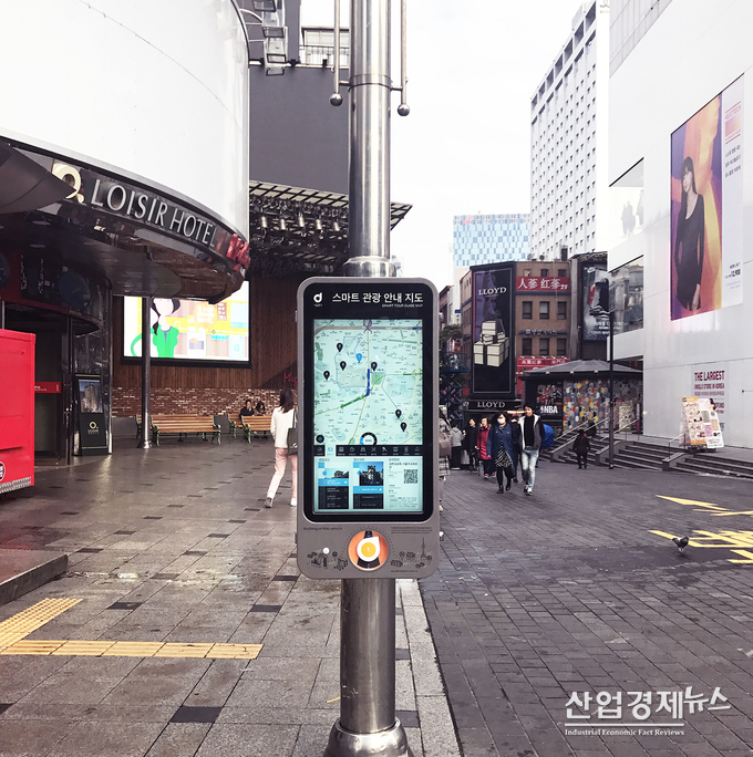 외국인이 많이 찾는 명동에 한국어, 영어, 중국어, 일본어 안내가 가능한 스마트 관광 안내판이 설치돼 외국인들의 서울 관광을 돕고 있다.