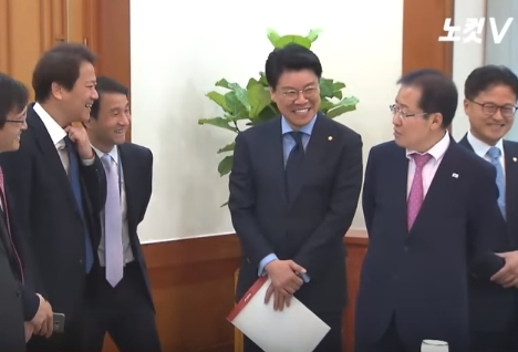 그리고 홍 대표는 "환영합니다"라며 홍 대표에게 인사하는 임 실장에게 하루 전에 터진 안희정 전 충남지사 얘기를 꺼냈다.