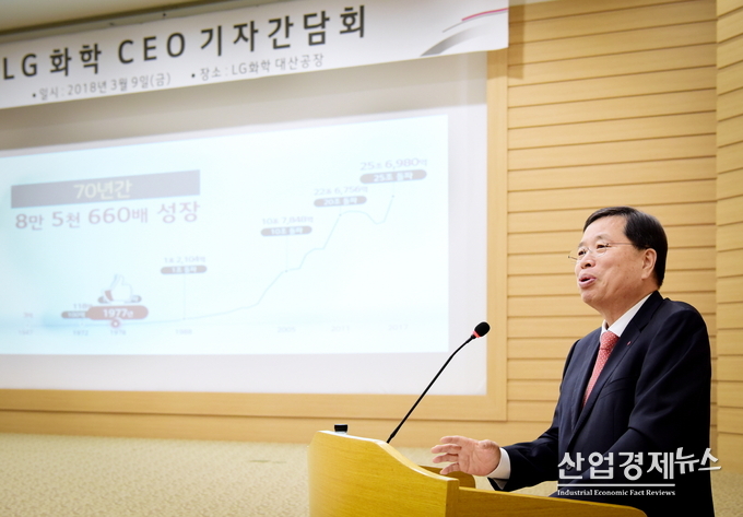 LG화학 박진수 부회장은 9일 충남 서산시 대산공장에서 개최된 기자간담회에서 투자와 인재 확보를 통해 올해부터 연평균 15% 이상의 고도성장으로 2020년 매출 36.4조원을 달성하겠다는 포부를 밝혔다.