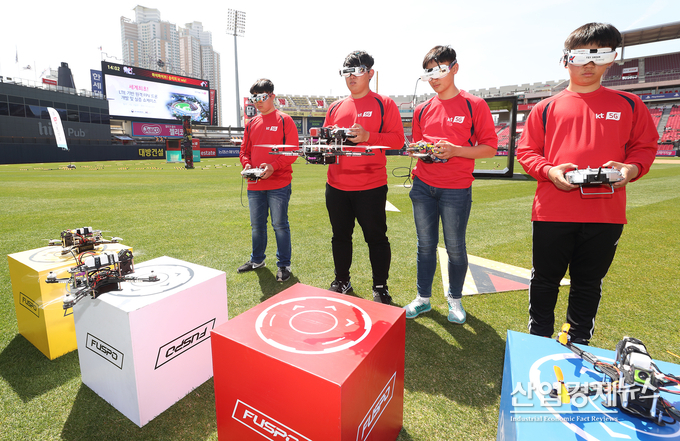 [산업경제뉴스 강민구 기자] KT(회장 황창규)는 21일 수원 KT 위즈파크에서 세계최초로 LTE 모듈이 탑재된 레이싱 드론을 시연하고 ‘KT 5G 드론레이싱 리그’ 대회를 성황리에 개최했다고 밝혔다.