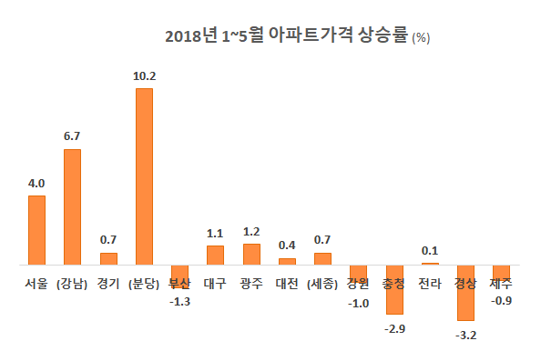 강남4구의 여전한 상승세와 함께 성남 분당구의 상승률이 10.2%를 기록해 올들어 가장 높은 상승률을 보였다.