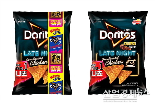 1일 롯데제과에 따르면 ‘도리토스 갈비천왕 치킨맛’은 굽네치킨의 인기 제품인 ‘굽네 갈비천왕’의 맛을 그대로 구현한 제품으로, 최근 치킨업계에 선풍적 인기를 끌고 있는 달짝지근하면서 짭조름한 양념이 일품이다.
