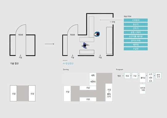 현대건설은 현관에 3가지 클린설계 기술을 적용해 새로운 개념의 공간인 ‘H-클린현관(H-Entrance)’을 개발했다고 밝혔다.