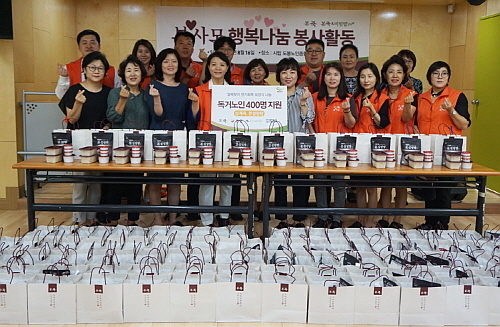 이날 임직원들은 삼계탕, 육개장, 즉석밥 등 간편식 제품으로 구성된 보양식 키트를 제작해 30여 가구의 어르신들께 직접 전달하며 어르신들과 담소를  나누는 등의 봉사활동을 펼쳤다.