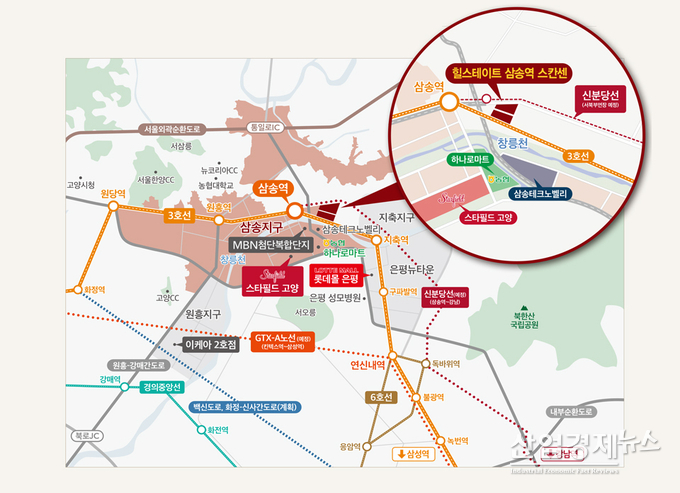 현대건설이 경기 고양시 삼송지구 도시지원시설에 공급하는 '힐스테이트 삼송역 스칸센'으로 2513실을 갖춘 보기드문 대규모 오피스텔이다.