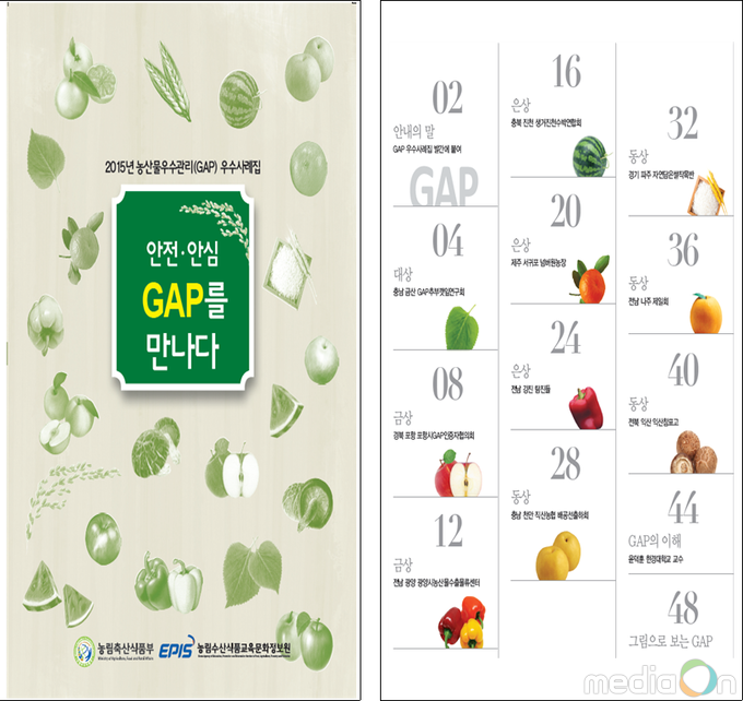 (미디어온) 농림축산식품부는 농업인의 농산물 우수관리(GAP) 참여를 촉진하고 지자체 관심 제고를 위해 GAP 우수농가 사례집을 책자로 제작배포한다고 밝혔다.
