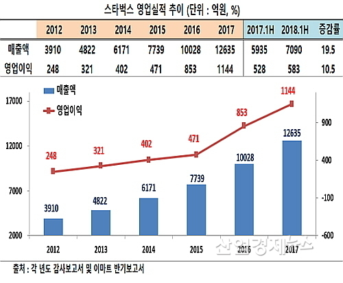 [산업경제뉴스 민혜정 기자] 스타벅스커피코리아(이하 스타벅스)의 성장세가 거침없다. 지난해 외형과 손익 모두 사상 최대 실적을 갱신하더니 올 상반기에도 성장세를 지속, 연간으로도 사상 최대치를 갱신할 기세다.