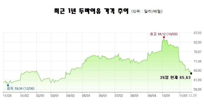 그후 국제유가는 2016년 부터 상승세로 돌아섰고 올해 들어서는 상승폭도 가파라졌다. 지난해 11월 59 달러 수준 이었던 두바이유 유가는 지난 10월, 84 달러를 찍으며 1년 여만에 42%나 상승했다.