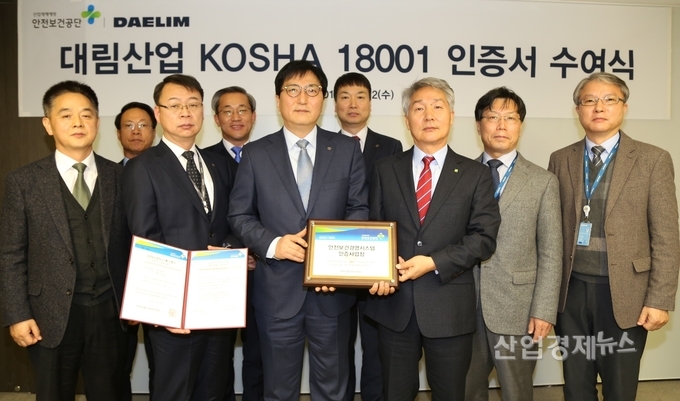 [산업경제뉴스 강민구 기자] 대림산업이 12월 12일(수) 안전보건공단으로부터 건설업 ‘KOSHA 18001’ 인증을 취득했다고 밝혔다. 이날 대림산업 수송동 본사 사옥에서 열린 인증 수여식에는 대림산업 박상신 대표이사와 안전보건공단 배계완 기술이사를 비롯한 양사 관계자들이 참석했다.