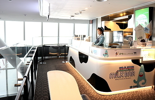 이번에 오픈한 롯데월드타워 서울스카이점에는 파스퇴르 우유로 만든 밀크 디저트를 전망대 캐릭터인 ‘타워 로타’ 디자인을 적용해 차별화된 특징을 살렸고, 서울시내 전경을 바라보며 밀크바를 체험할 수 있도록 탁자와 의자를 배치하고 저온살균우유 등의 제품도 전시돼 있다.