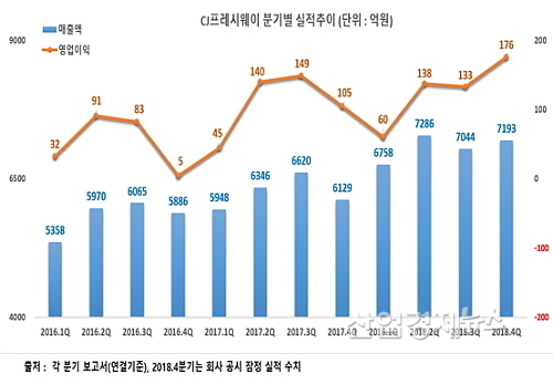 이에 대해 CJ프레시웨이 관계자는 “소비심리 악화에 따른 외식 경기 침체와 최저임금 인상에 따른 인건비 부담에도 불구하고 마진 개선 전략과 판매 수수료 개선 등 효율성 증진 작업이 주효하면서 두 자릿수 이상의 매출 성장과 함께 수익성 개선까지 이뤄졌다”고 설명했다.