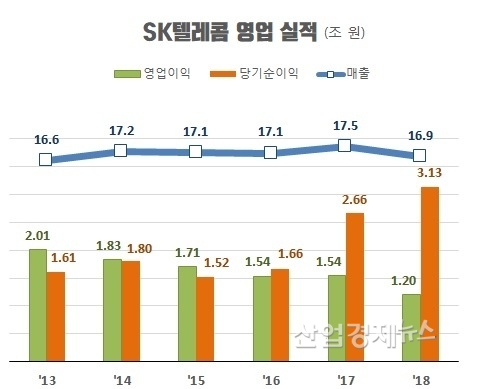 업계와 시장의 주목을 받은 SK텔레콤의 2018년 경영실적은 당기순이익이다. 2018년 당기순이익은 3조1320억원으로 영업이익의 2배 넘는 실적을 냈기때문이다.