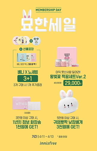 이니스프리, ‘묘한 세일’ 컨셉 4월 멤버십데이 진행