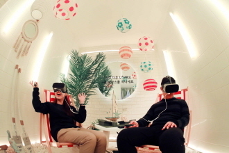 이곳에서 방문객들은 VR헤드셋을 착용하고 VR웹툰 등을 즐겼다. LG유플러스는 800여편의 VR과 AR, 그리고 공연 5300 여편을 준비했다.