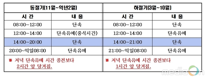 지난 5일부터 시 전역에 설치된 32개소 38대 카메라 중 북신․무전 신시가지내 주상복합시설 밀집지역 1개구간을 제외한 전체 무인단속카메라 운영시간을 동절기와 하절기 구분 운영하고, 단속시간도 조정하여 시민들의 시가지 나들이 차량 주․정차로 인한 불편을 해소하기로 했다.