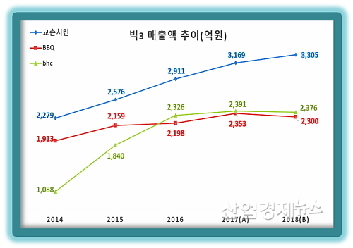 [산업경제뉴스 민혜정 기자] 교촌, bhc, BBQ, 굽네 등 외형 기준 국내 치킨 프랜차이즈 빅4의 지난해 매출 실적이 각 사별로 명암이 교차한 것으로 나타났다.