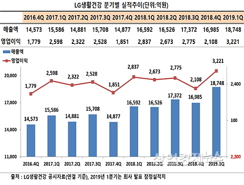 [산업경제뉴스 민혜정 기자] LG생활건강이 올 1분기에 영업 실적 관련 창사 이래 2가지 신기록을 달성, 겹경사를 맞았다.