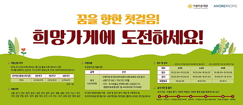 아모레퍼시픽과 아름다운재단이 함께하는 한부모 여성 창업 대출 지원 사업 ‘희망가게’가 5월 6일부터 6월 7일까지 2019년도 2차 창업주를 공개 모집한다.