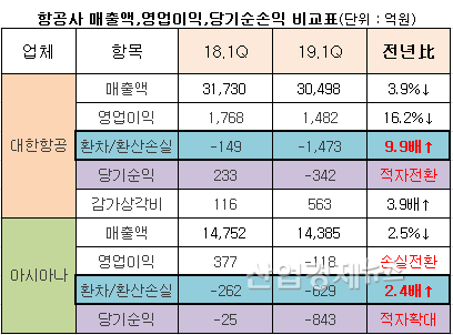 [산업경제뉴스 김소산 기자] 국내 대표 항공사인 대한항공과 아시아나항공의 지난 1분기 당기순익이 적자로 마감되면서 미래 수익성에 경고등이 켜졌다.