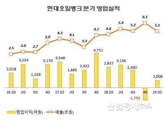 국제유가의 등락이 그대로 회사의 이익에 반영됐기 때문인데 그런 가운데 현대오일뱅크의 이익 등락폭이 가장 적어 상대적으로 유가 영향을 가장 작게 받았다는 평가를 받고 있다.