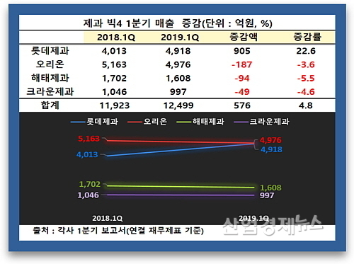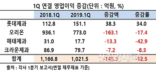 [산업경제뉴스 민혜정 기자] 롯데제과가 올 1분기 오리온, 해태제과, 크라운제과 등 주요 경쟁사 가운데 나홀로 짭짤한 장사를 한 것으로 분석됐다.