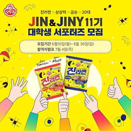 주식회사 오뚜기(대표 이강훈)는 지난 12일 2019년 상반기 신입사원 채용 서류 접수를 마감한데 이어 오는 30일까지 진라면 대학생 서포터즈인 ‘진앤지니’ 11기 모집에 나섰다.