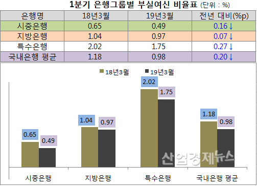 [산업경제뉴스 김소산 기자] 부산은행, 대구은행, 경남은행, 광주은행, 전북은행, 제주은행으로 대표되는 국내 지방은행들의 올해 1분기 말 부실여신 비율이 일반시중은행의 2배에 달하는 것으로 나타났다.