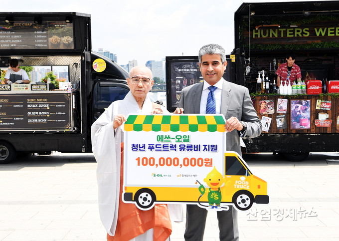 S-OIL은 12일 ‘청년 푸드트럭 유류비 전달식’을 갖고 ‘함께 일하는 재단’에 후원금 1억원을 전달했다.