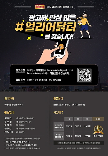치킨 프랜차이즈 BBQ는 총 상금 2500만원 규모의 청춘마케터 공모전을 진행한다.