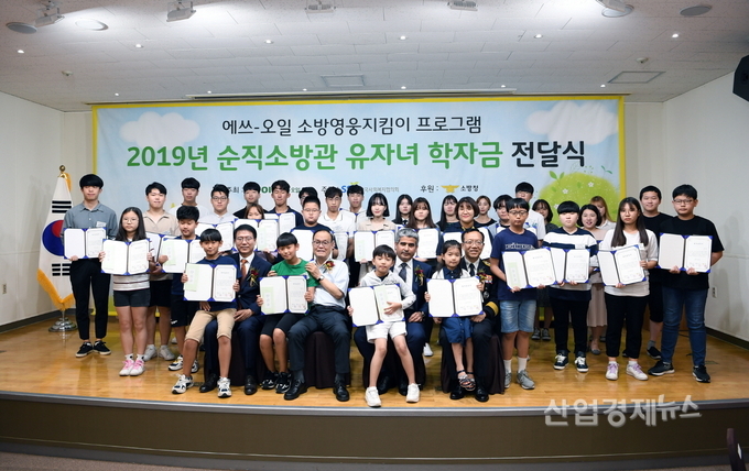 S-OIL은 28일 용산소방서에서 순직소방관 유자녀 70명에게 300만원씩 총 2억 1천만원의 장학금을 전달했다.