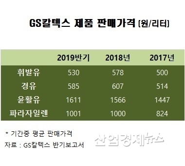 GS칼텍스의 올 상반기 휘발유 평균 판매가격은 리터 당 530원으로 지난해 578원에 비해 8% 낮아져 매출과 이익 감소로 이어졌다.