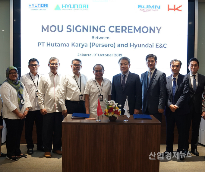 [산업경제뉴스 최기훈 기자] 현대건설이 인도네시아 국영건설업체 후따마 까리야와 현지시간 9일 수도 자카르타에서 향후 인도네시아 정부에서 추진될 주요 국책 사업 협력을 위한 MOU(양해각서) 서명식을 가졌다.