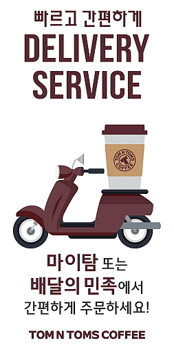 [산업경제뉴스 민혜정 기자] 커피전문점 탐앤탐스가 공식 앱인 마이탐(MYTOM)과 음식 배달 앱 ‘배달의민족’을 통해 ‘딜리버리 서비스’를 시작했다고 24일 밝혔다.