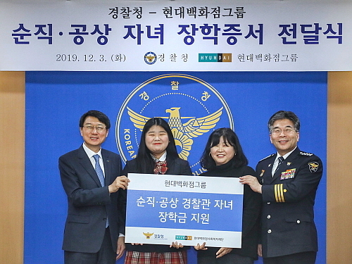 [산업경제뉴스 민혜정 기자] 현대백화점그룹이 순직 경찰관 자녀(170명)와 공무 중 상해를 입은 공상(公傷) 경찰관 자녀(100명) 등 총 270명에게 장학금 4억 원을 전달키로 해 훈훈한 감동을 주고 있다.
