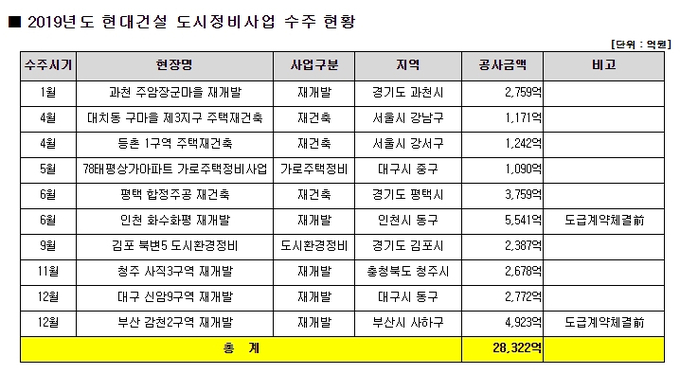 [산업경제뉴스 최기훈 기자] 현대건설이 지난 21일 부산 감천2구역 재개발사업을 수주하며 올 한해 도시정비사업 수주액 2조8322억원(12/21 기준)을 기록하며 국내 건설업체 중 최고액을 달성했다.