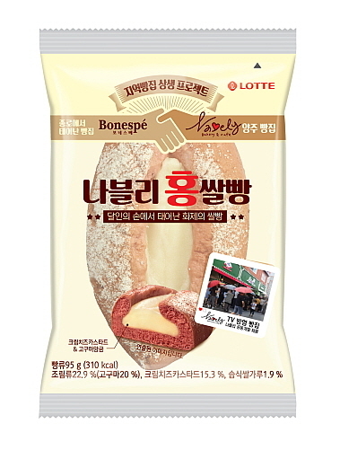 롯데제과는 이 프로젝트의 첫 번째 제품으로 경기도 양주에 위치한 ‘나블리 베이커리’를 선정, 두 달여의 공동 연구 개발 기간을 거쳐 ‘나블리 홍쌀빵’을 선보였다.