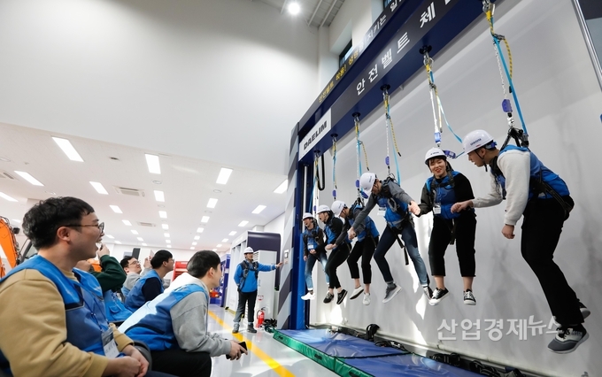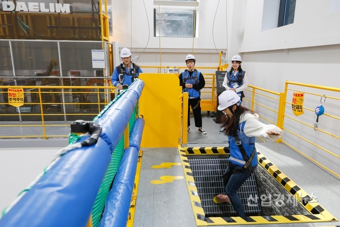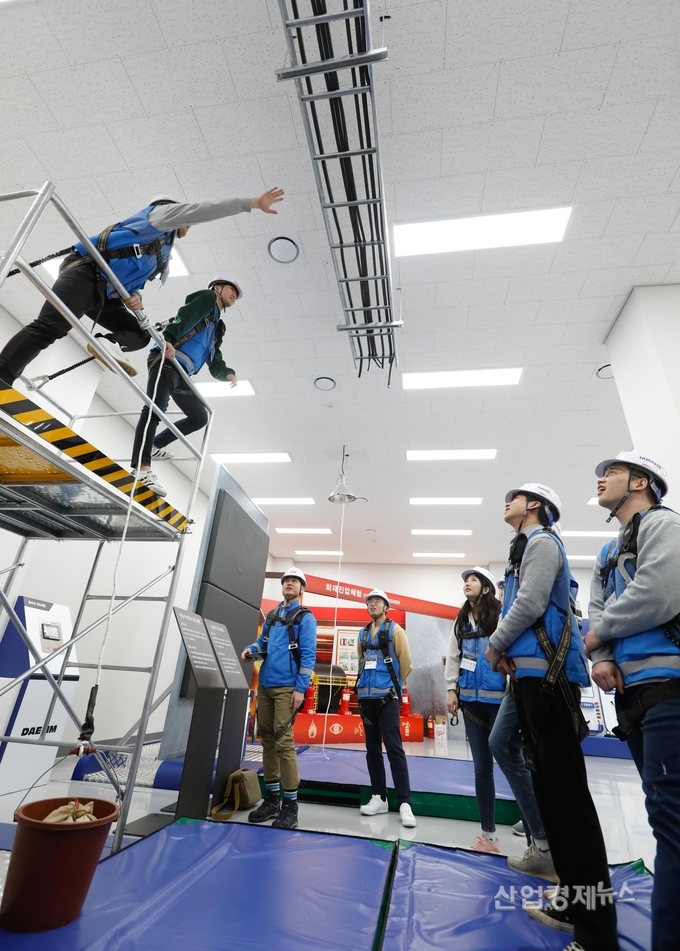 [산업경제뉴스 최기훈 기자] 대림산업이 현장의 안전의식을 제고하기 위해 신입사원들에게 현장 상황을 재현한 안전교육을 실시하고 있다.