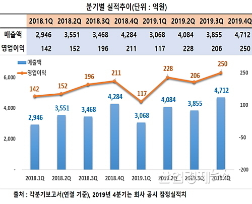 4Q 매출과 영업이익 전년비 10.0%, 18.5%씩 증가..사상 최대