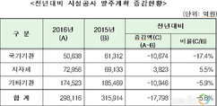 (미디어온) 조달청은 29조 8천억 원 상당의 2016년 공공부문 시설공사 발주계획을 2월 17일 공표했다. 올해 국가기관, 지자체, 공기업 등에서 발주할 시설공사 집행계획 규모는 지난해의 31.6조원보다 5.6%(1.8조원) 감소했다. 국가기관은 17.4%(10,674억 원) 감소하고, 지방자치단체 5.5%(3,823억 원) 증가하였고, 기타 공공기관은 5.9%(10,946억 원) 감소했다. 이 중 조달청을 통해 발주되는 예시 규모는 전년(9조 5천억 원) 대비14.6% 감소된 8조 1천억 원이다. 발주계획을 통보하지 않은 기관을 고려하면, 올해 10조원을 초과할 것으로 전망되고 있다. 기관별 발주계획 예시 규모를 분석해 보면, 국가기관 발주계획은 5조 638억 원으로 2015년 계획(6조 1,312억 원) 대비 17.4% 감소하였고, 감소원인은 항만, 대학교 및 교도소 신축, 하천환경정비사업 축소에 따른 것이다. 지방자치단체는 2015년 계획(6조9,133억 원) 대비 5.5% 증가한 7조2,956억 원 규모이며, 증가원인은 컨밴션센터, 복선전철, 야구장 건립 등에 따른 것이고, 공기업 등 기타기관은 2015년 계획(18조 5,469억