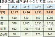 [엔트로피타임즈 김소산 기자]JB금융지주(이하, JB)사가 지주사 전환 이후 최대 폭의성장을 지속하고 있다. JB그룹은전북은행, 광주은행, JB우리캐피탈, JB자산운용, 프놈펜상업은행을 자회사로두면서 2013년 7월 지주사로 전환한 금융그룹이다. JB는지난해 순이익이 전년도에 비해 31.4% 증가했다. 이로써 JB는최근 3년 순이익 규모를 2.1배 키우게 됐다. JB그룹은 지난달 2018년도 경영실적을 공개하면서, 지난해 그룹의 당기순익은 2431억으로 전년보다 31.4% 증가했다고 발표했다. 2015년을 기준으로, JB의 순이익 증가율은 2016년 24.4%, 2017년 29.7%, 2018년 31.4%로 3년 연속 20%대 이상 성장하면서 그 폭은 더욱 확대됐다. 이에 따라, 자산 운용의 효율성 지표인 ROA(Return on Assets, 총자산수익률)도 2015년 5.7%, 2016년 6.4%, 2017년 7.8%, 2018년 9.1%를 나타내며 시간이 흐를수록 확대 폭을 키워갔다. 이에 대해 그룹 측은 “지난해 순이익 2431억 원은, 당초 목표치 2083억 원을 초과 달성한 수치” 라며 “이는 차별화된 NIM 상승에 따른 이자이익 증가와 비용요인
