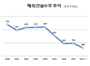 [산업경제뉴스 문성희 기자] 한때 우리 경제의 주역이었던 해외건설이 지난 4년 동안 계속 내리막길을 걸으면서 주요 수주 지역과 상위 건설사 순위 등 해외수주의 지형도가 바뀌고 있다. 해외건설 수주액은 2010년 716억 달러까지 솟아 올랐고 이후 건설업계는 해마다 700억 달러를 넘기자는 구호를 외치며 외형확대에 몰입했다. 하지만 2014년 660억 달러를 기록한 이후 해외수주는 급감했고 2년 만에 반토막이 나버렸다. 그리고 올해까지 그 상태에 멈춰있다. ■ 중동 수주 급감하고 아시아 수주 1위로 부상 해외건설수주 실적이 급속히 줄어든 이유는, 오랫동안 우리 건설수주의 텃밭이었던 중동 지역의 수주가 3분의 1 토막이 났기 때문이다. 해외건설협회의 해외건설 통계자료를 분석해 보면 2014년 상반기 중동지역의 수주는 228억 달러였지만 4년 후인 올해 상반기 중동지역 수주액은 65억 달러로 내려 앉았다. 무려 71%가 감소한 실적이다. 중동지역의 수주 감소 이유에 대해 업계에서는 시리아 내전 등 정치적인 이유와 국제유가 급락 때문이라고 진단한다. 2014년 하반기 까지 100 달러를 상회하던 두바이유 등 국제유가는 2년만인 2016년 25 달러까지 유래없는 급락